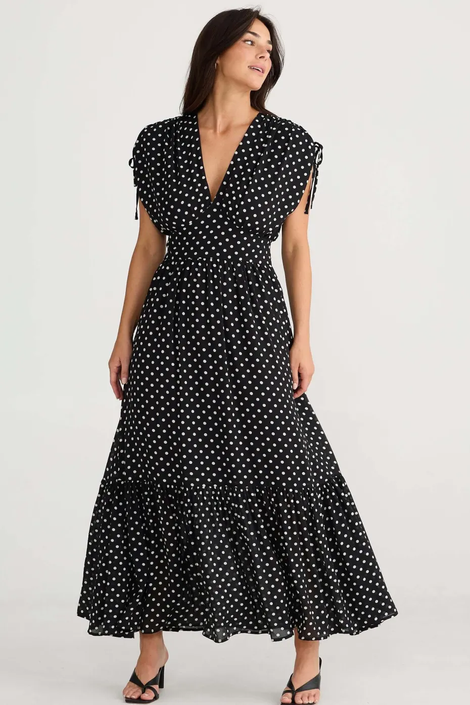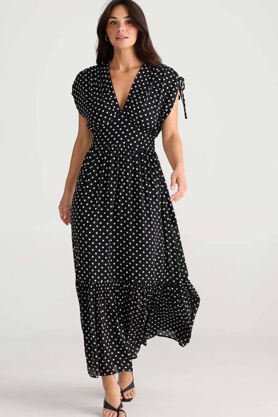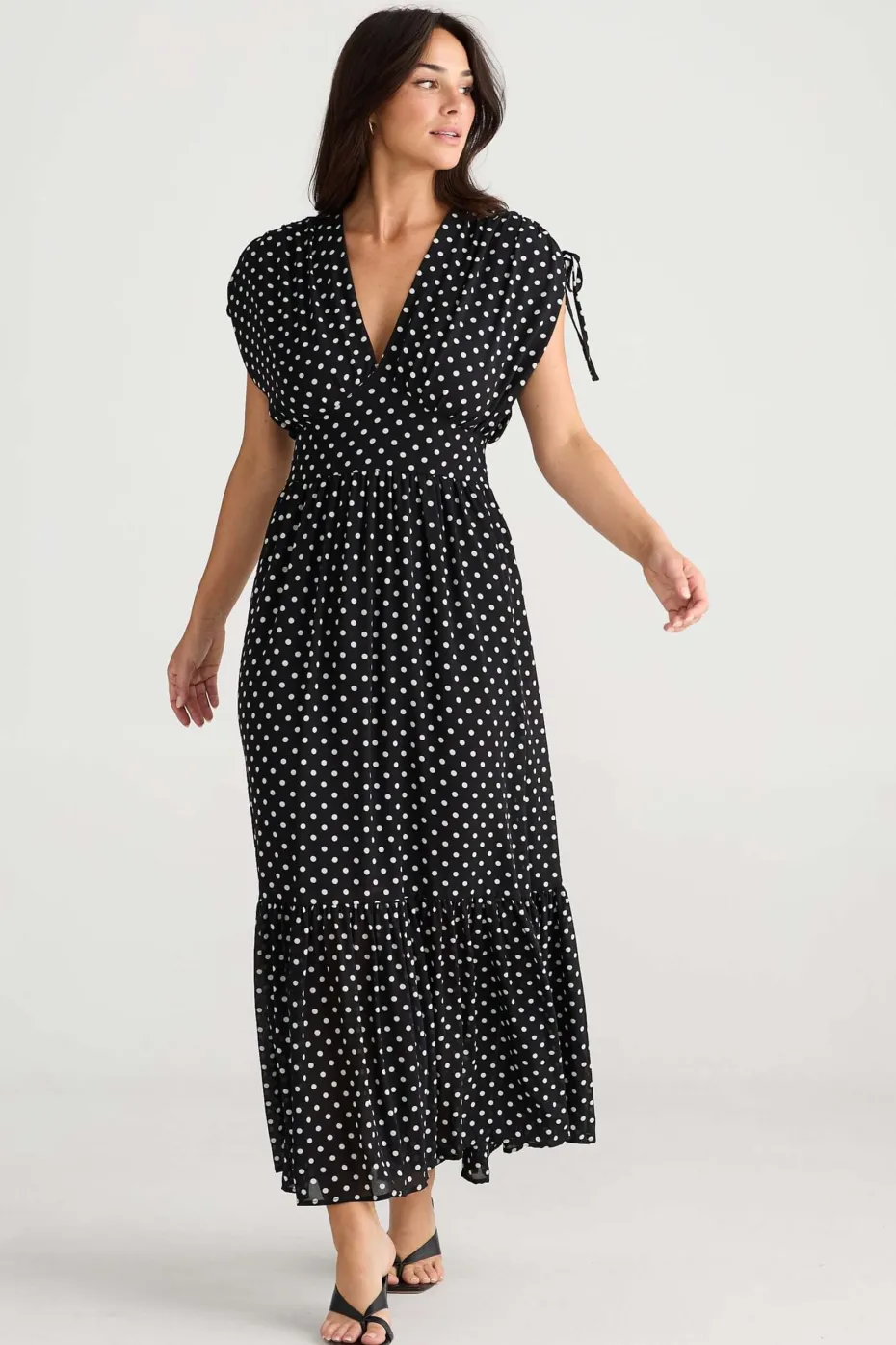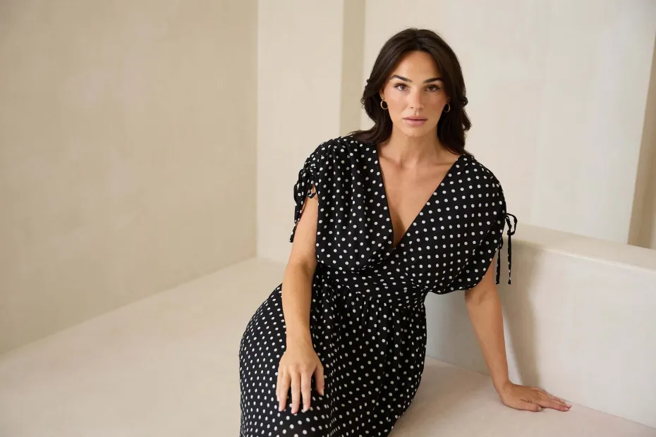 Gathered skirt into flattering shaped waist panel