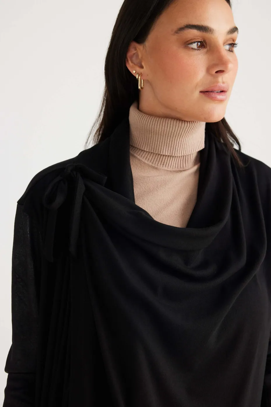 Jersey body with wrap neck and tie