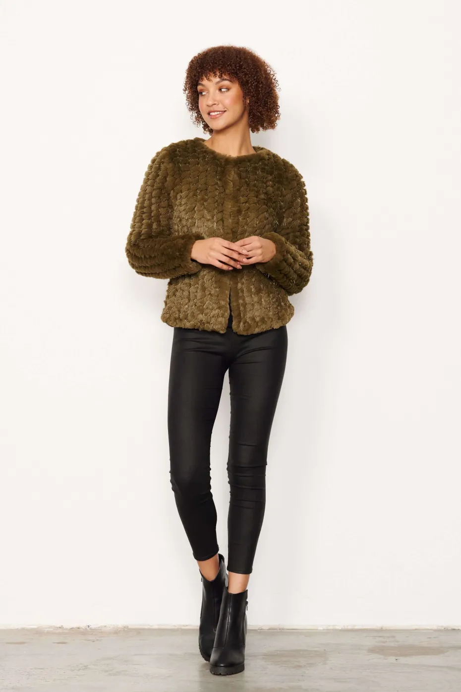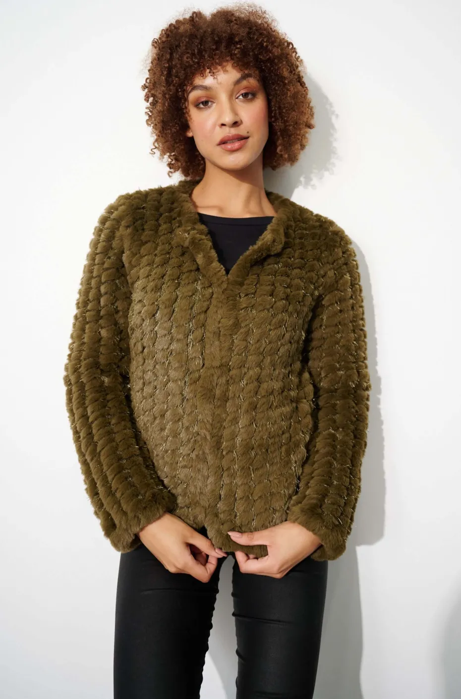 Faux Fur Jacket with Front Fastenings