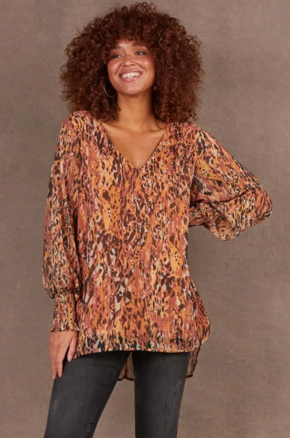 Dazzle at your next event with the Bantu Top, an exquisite sheer number threaded with shimmering lurex. Its flattering neckline, sheer bishop sleeves, and relaxed hem promise instant glamour. Complete the look with leggings, boots, and statement accessories for a sophisticated ensemble that captures attention and radiates evening allure.