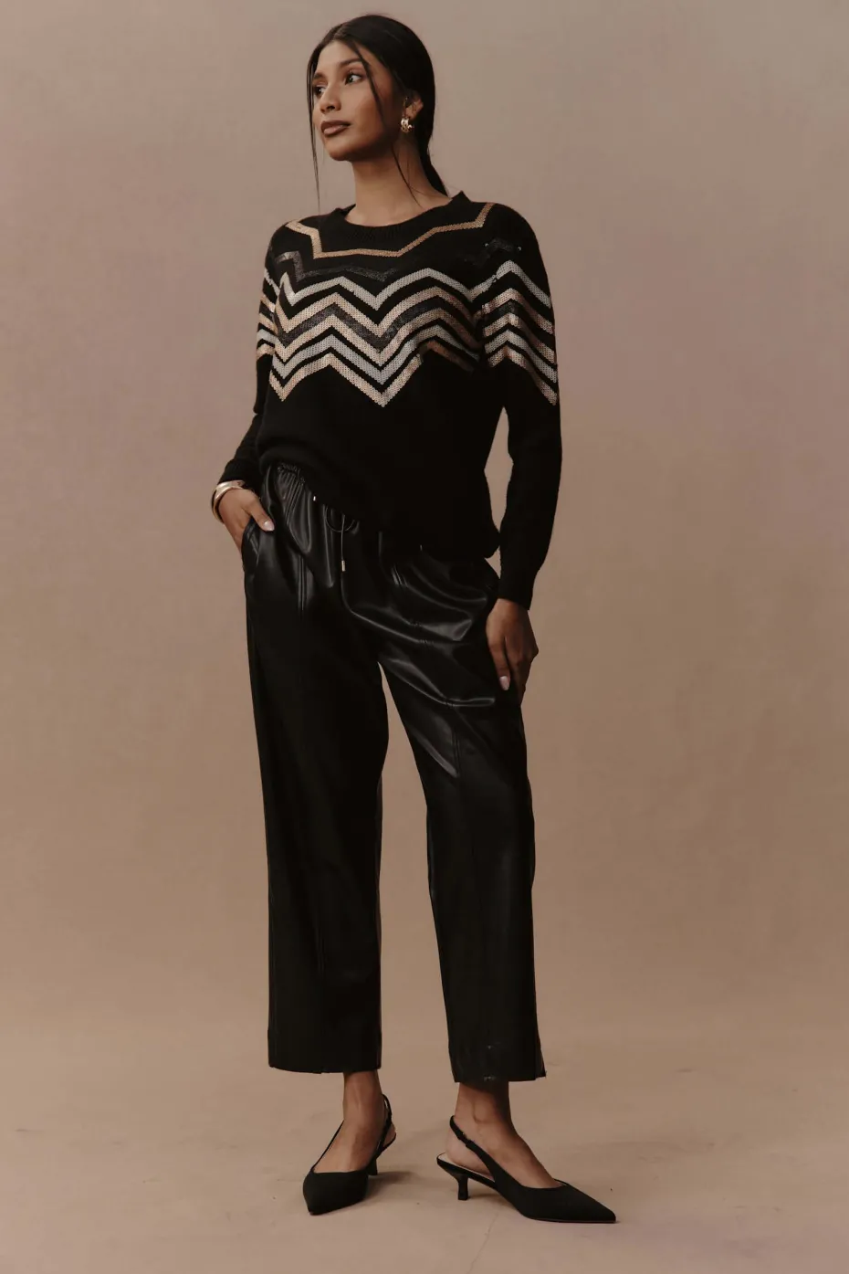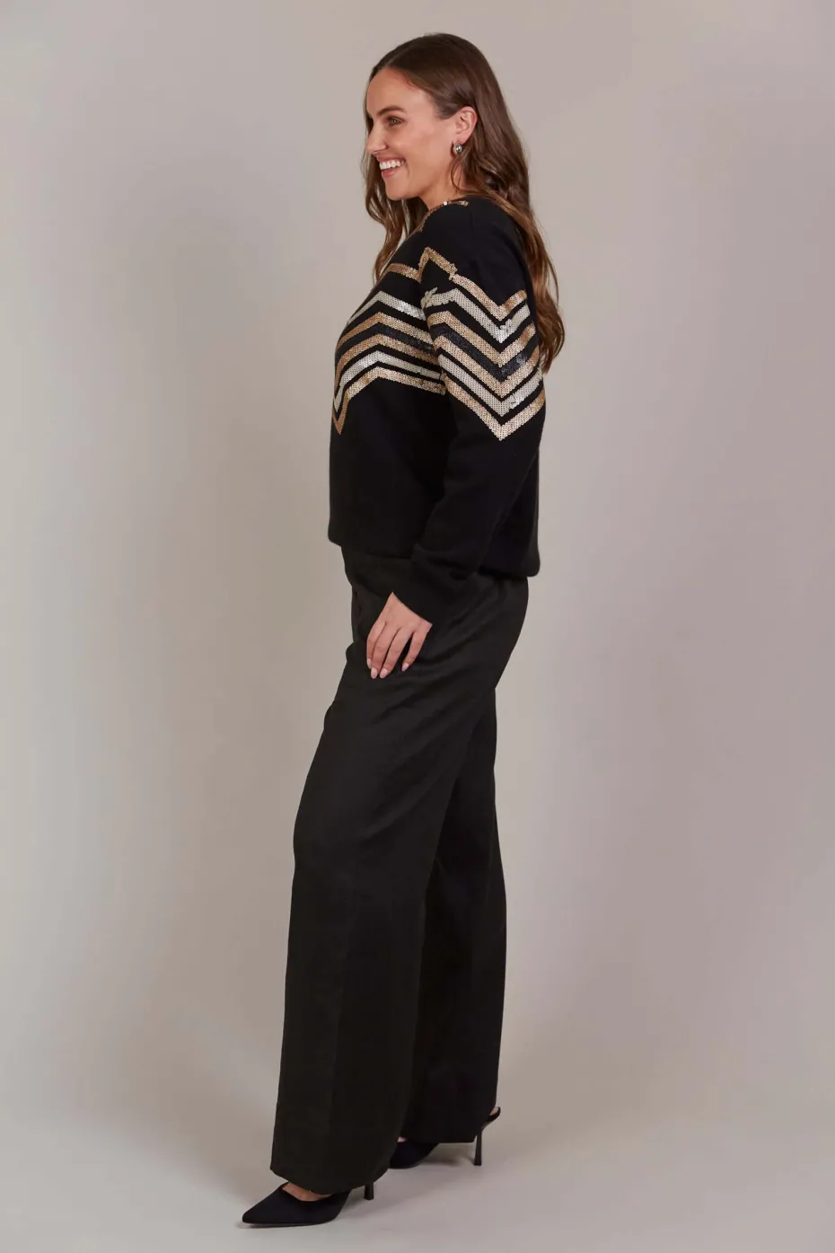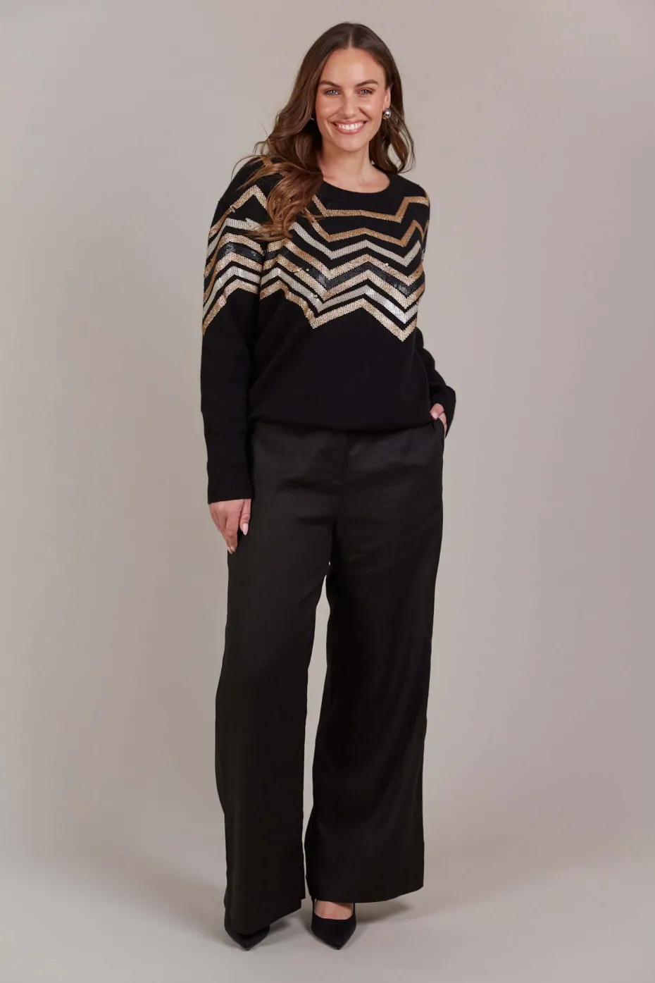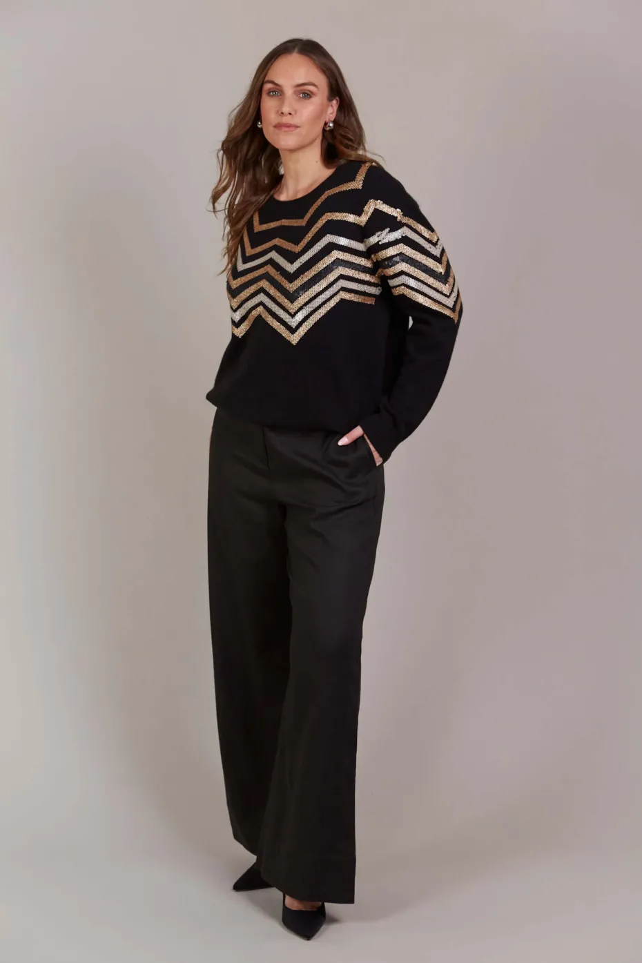 Make an impression at your next event with the Santani Knit, the perfect statement piece for any celebration. The sparkling sequin design stands out beautifully against the solid knit, creating a bold, eye-catching effect. Featuring a classic crewneck, long sleeves, and a flattering hip-length fit, it’s both chic and comfortable. Accentuate the sequins with mixed metal jewellery and tonal bottoms to complete your ensemble.