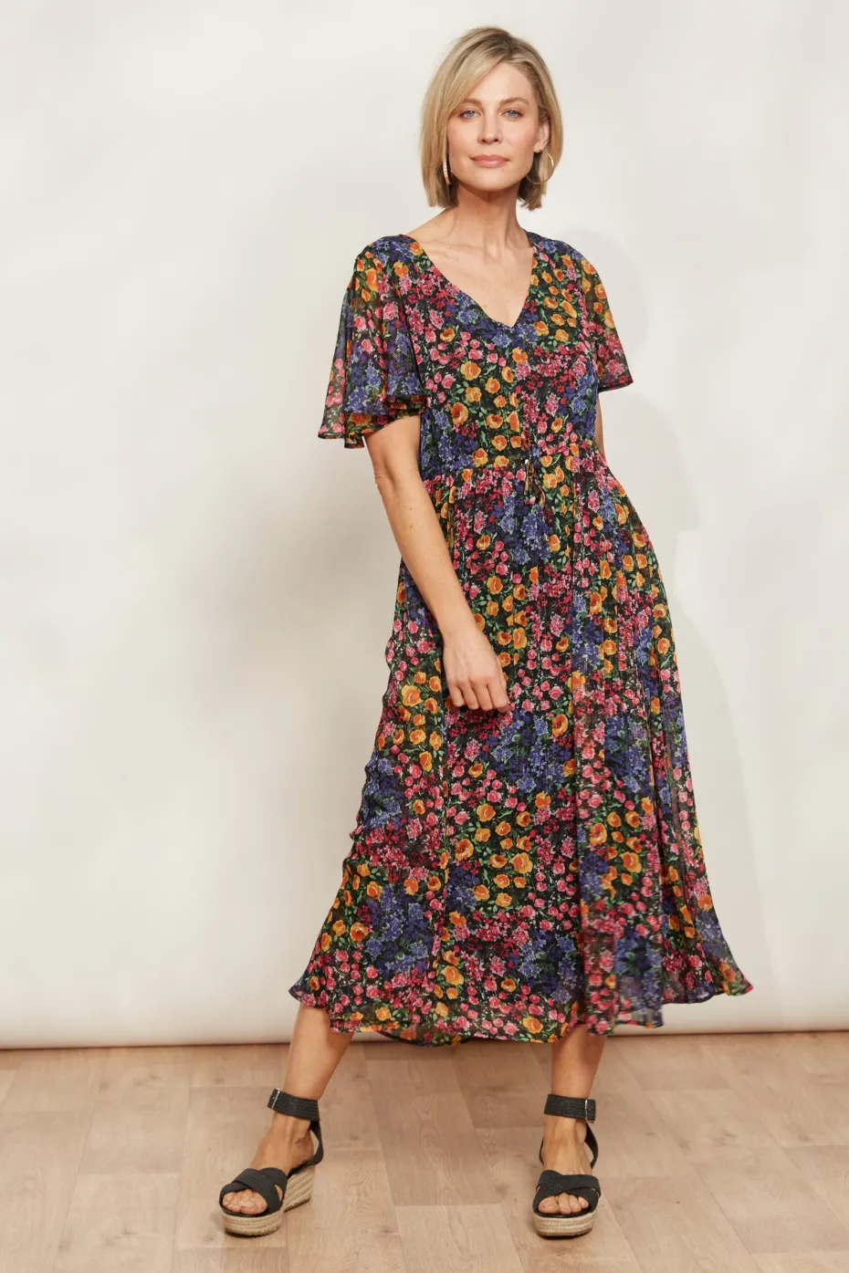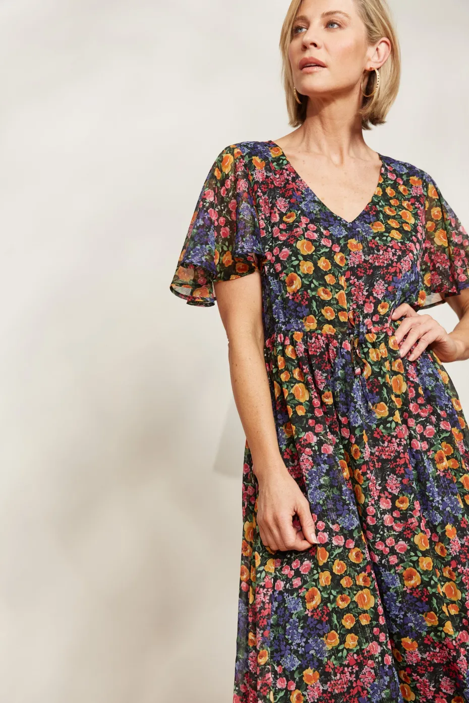 Arrive at your next event in your dream dress. The Solstice Maxi is here to take your event wardrobe to the next level. It features sheer flutter sleeves and an adjustable drawstring waist complemented by a breezy A-line skirt perfect for twirling the night away! With the addition of shimmering lurex threading, this dress effortlessly transitions from day to night. Get ready for plenty of compliments!