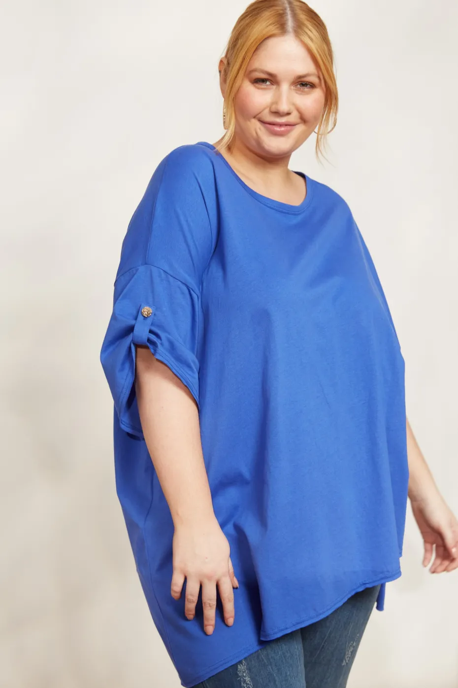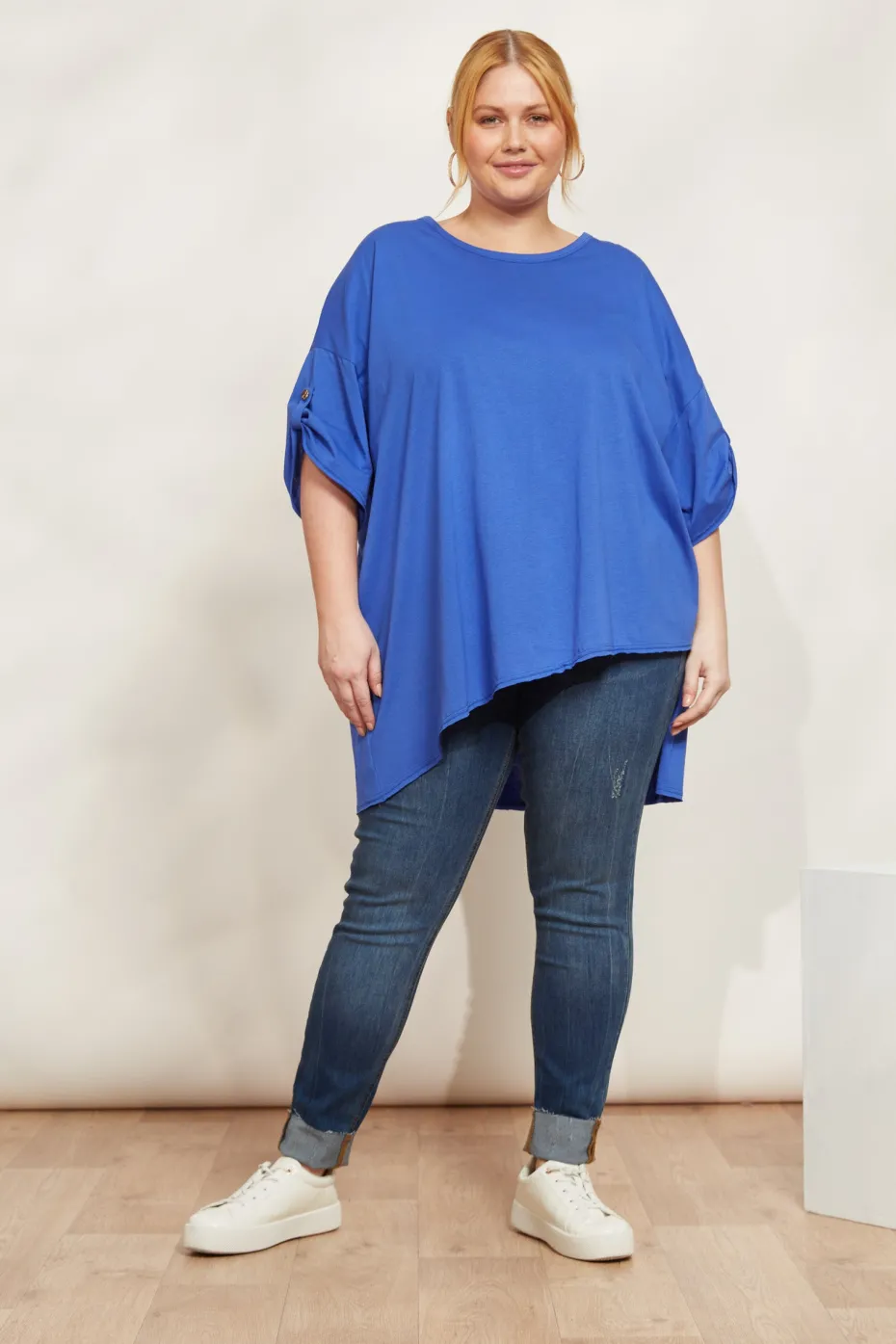 The effortless Verano Tshirt brings cool girl chic to your wardrobe with none of the effort. Sporting an oversized fit, short tab button sleeves, and an asymmetrical step hem, it’s all about the details that define style. Plus, the soft and stretchy cotton construction ensures all-day comfort. Whether with your favourite denim, shorts, or loose pants, effortlessly rock the laidback look.