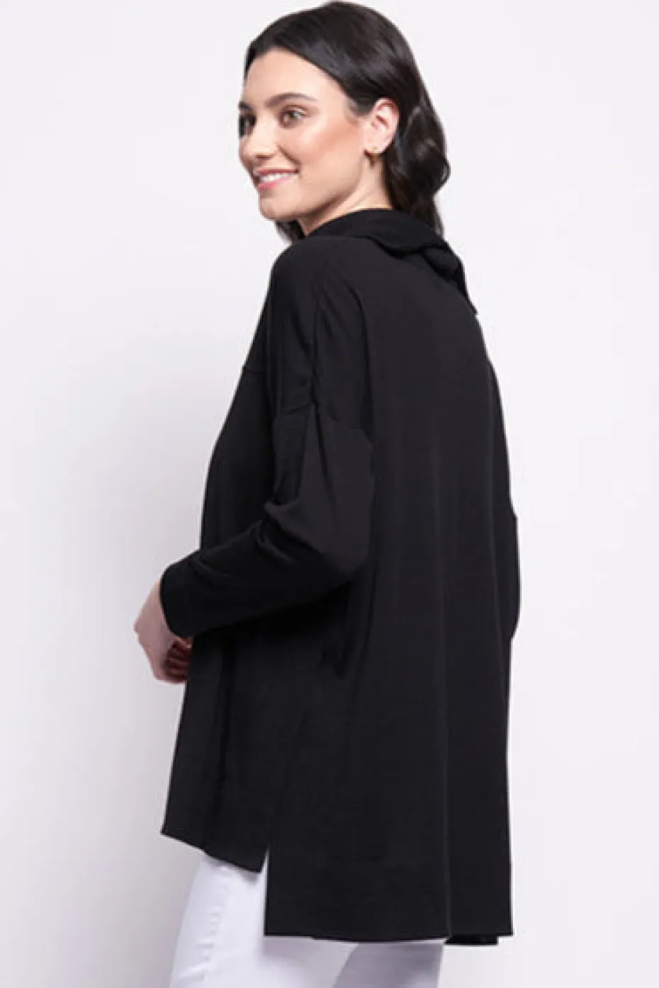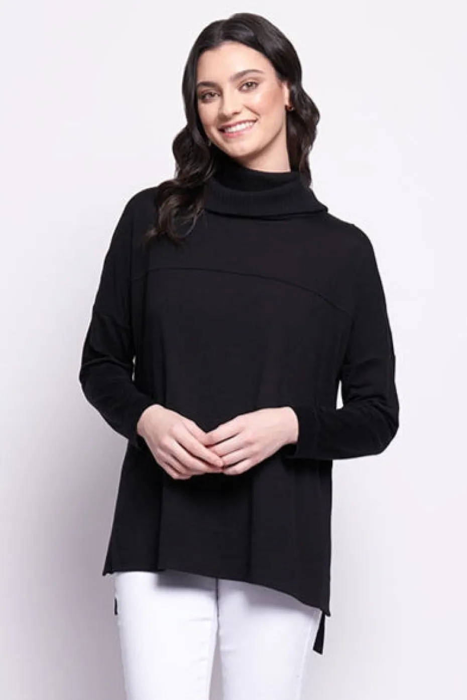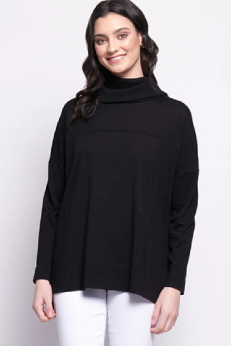 Merino wool knit with cowl neckline with side split