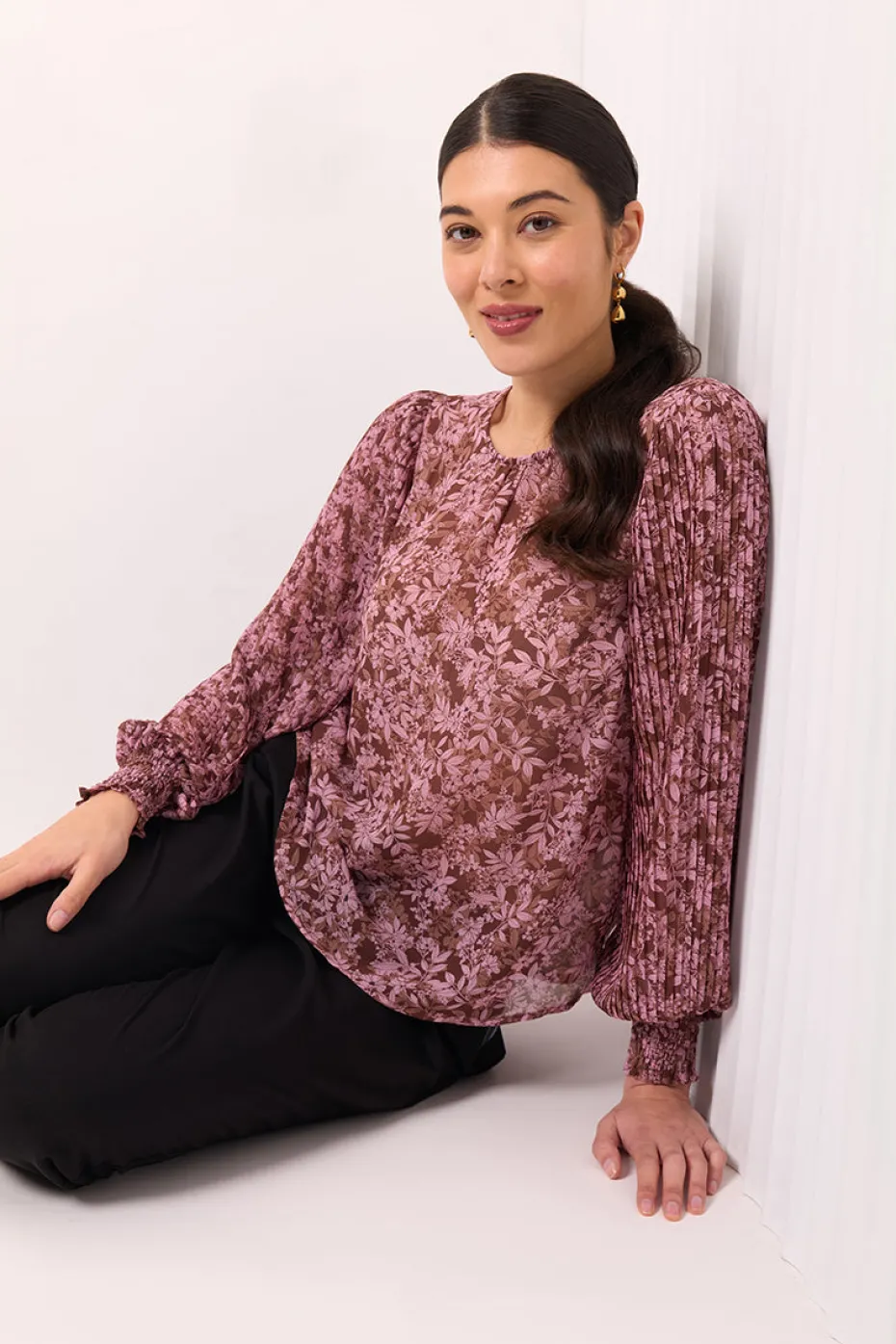 Pleated sleeves with wide elastic cuff