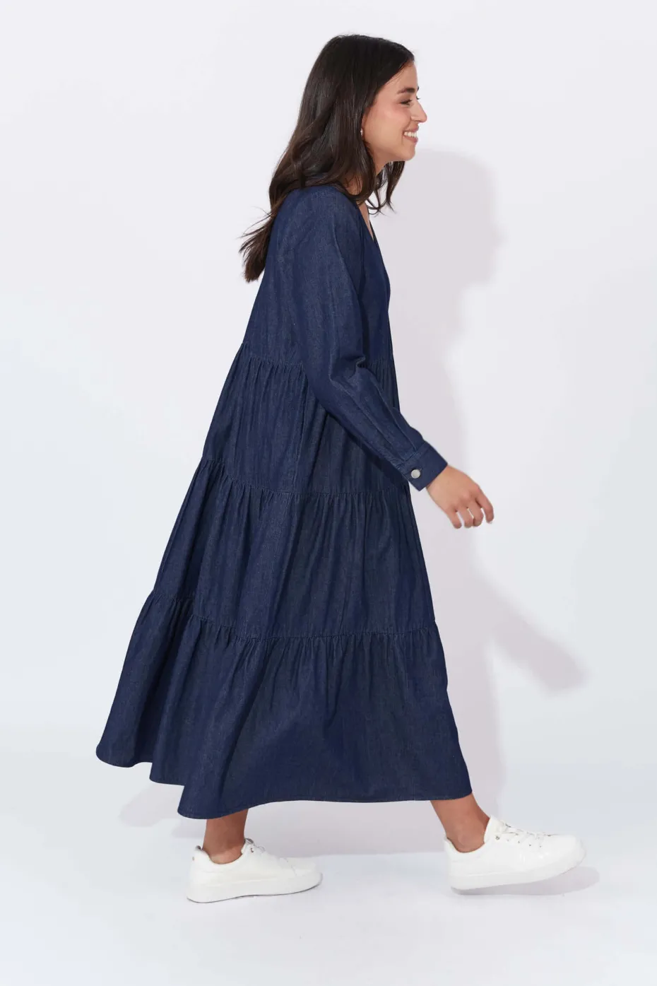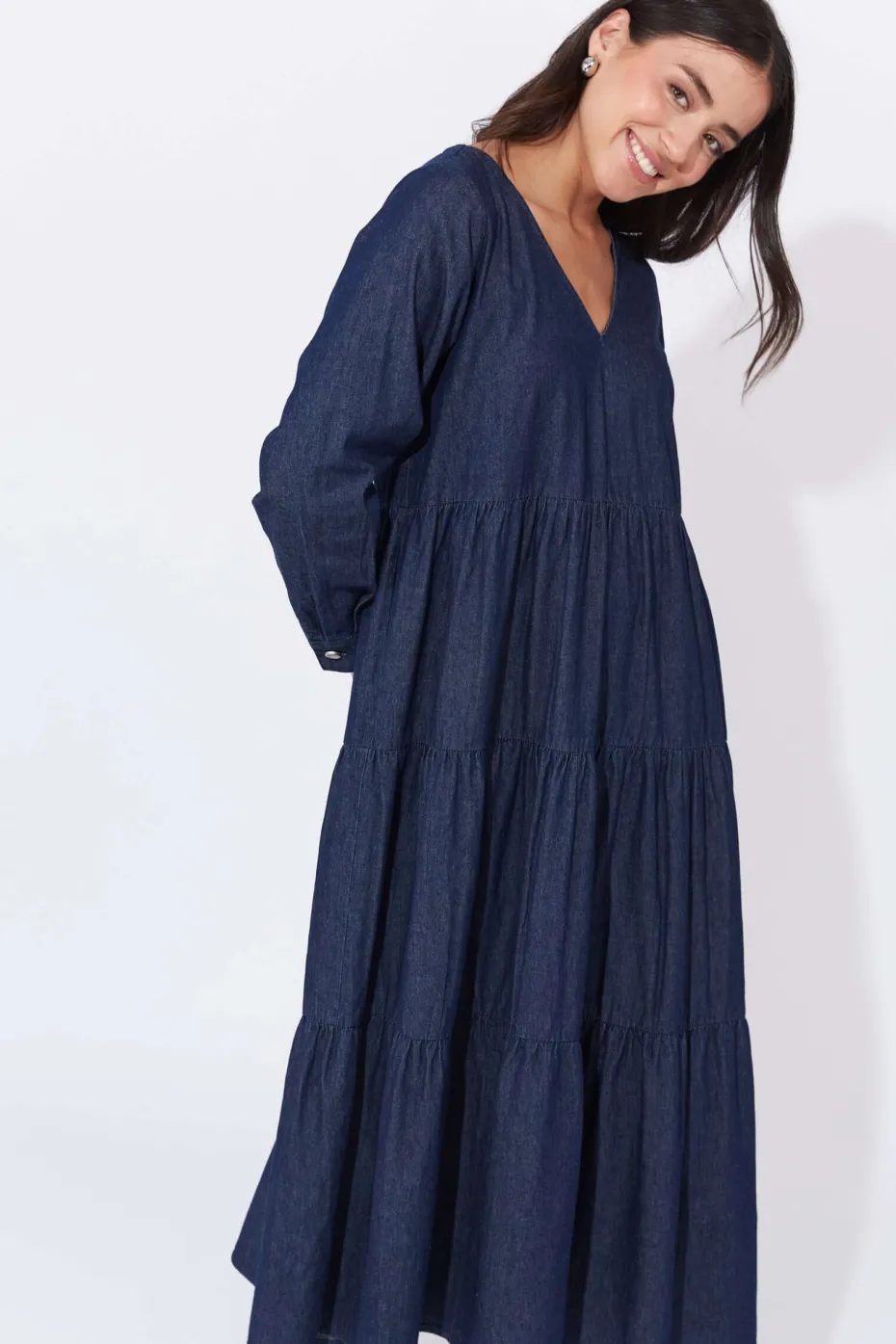 When you need to be ready in a flash, the Austin Denim Maxi is here to save the day! Crafted from soft cotton denim with lovely feminine finishes, this dress offers a graceful drape that moves beautifully with you. Wear it on its own for a clean and stylish look, or layer it with your favourite knit cardigan or sweater for added warmth on cooler days.