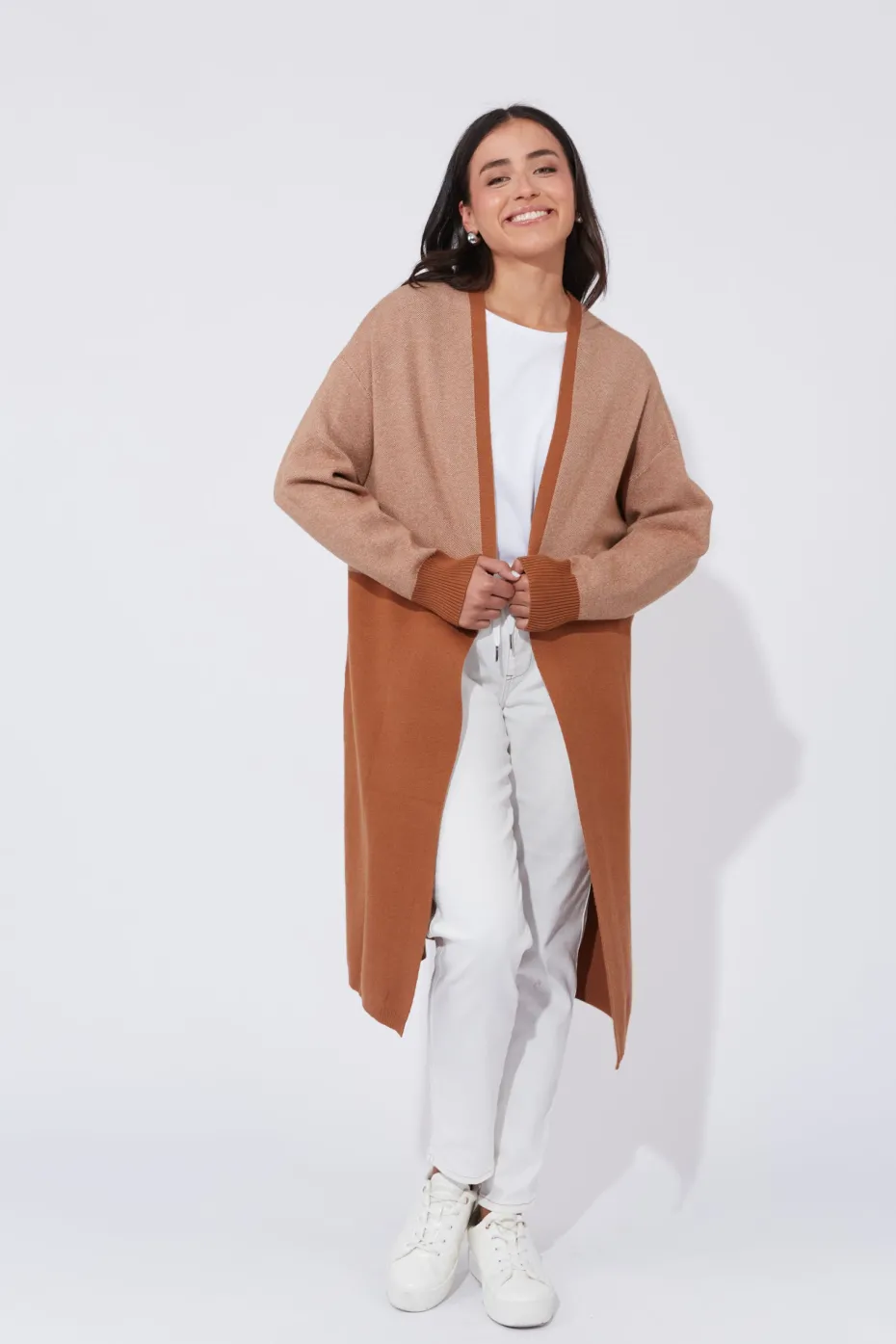 Always adaptable and ready for any weather, the Cyprus Cardigan is a timeless staple you’ll love to wear. With its longline silhouette, open-front design, and bold colour-block design, this piece captures the vibrant spirit of HAVEN. Wear it with complementary shades for a coordinated look, or keep it simple with neutrals to let the cardigan shine.