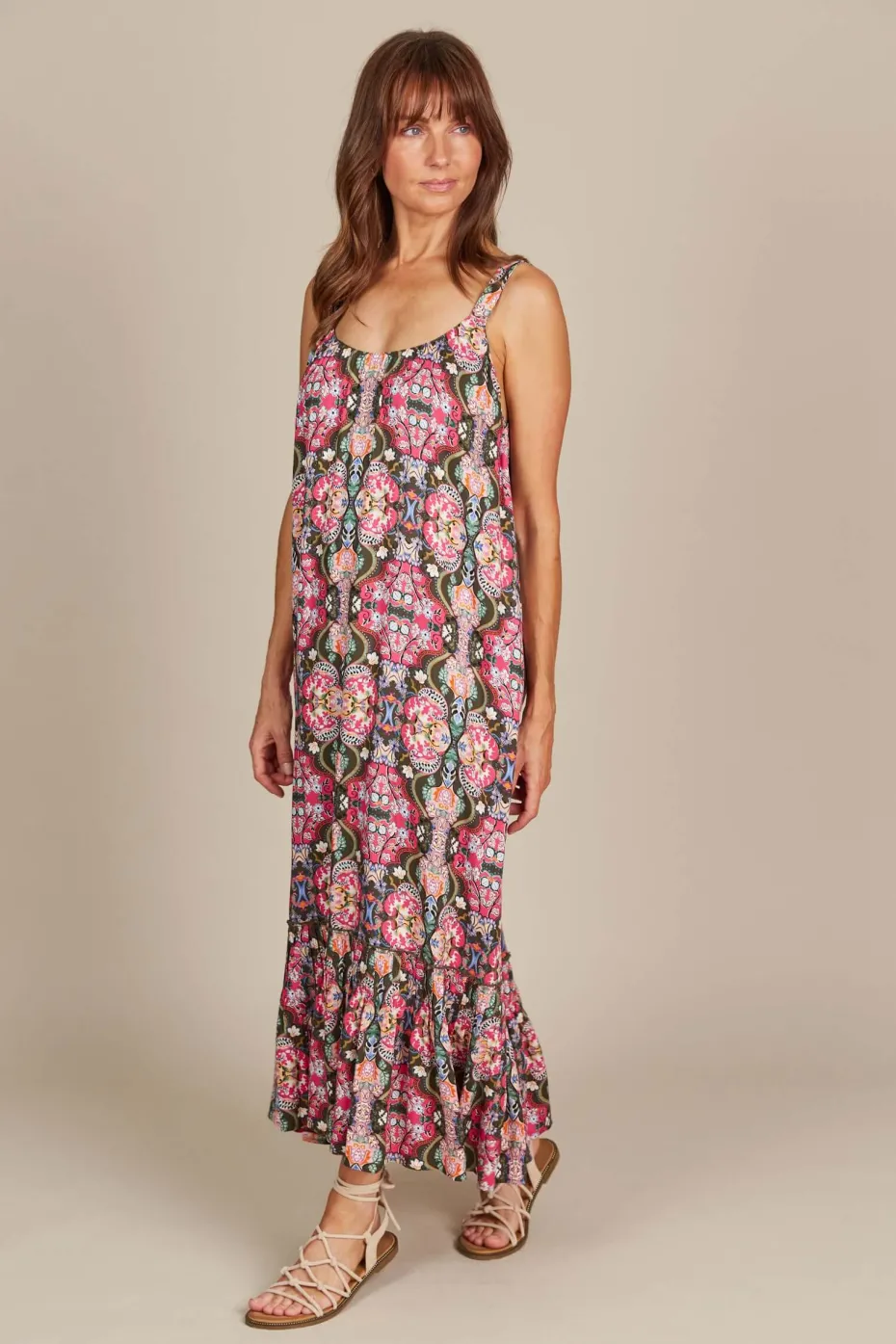Isle of Mine Esme Tank Dress in Olive Fleuron