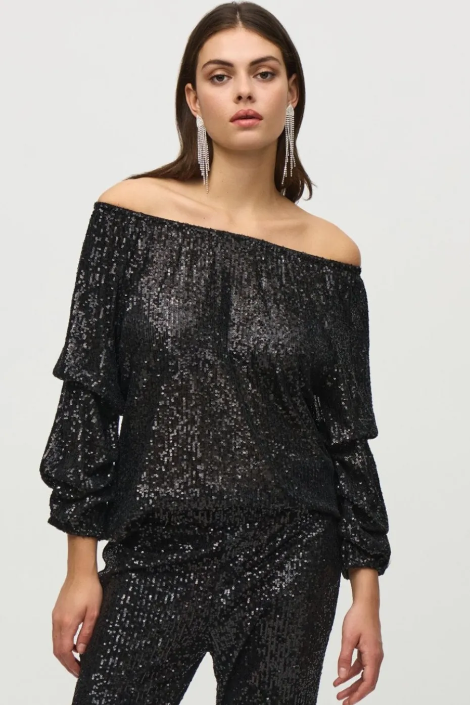 Ideal for a night out or special occasion, this glamorous sequinned off-the-shoulder top featuring statement puff sleeves will create a magnetic look that’s sure to cause a sensation.