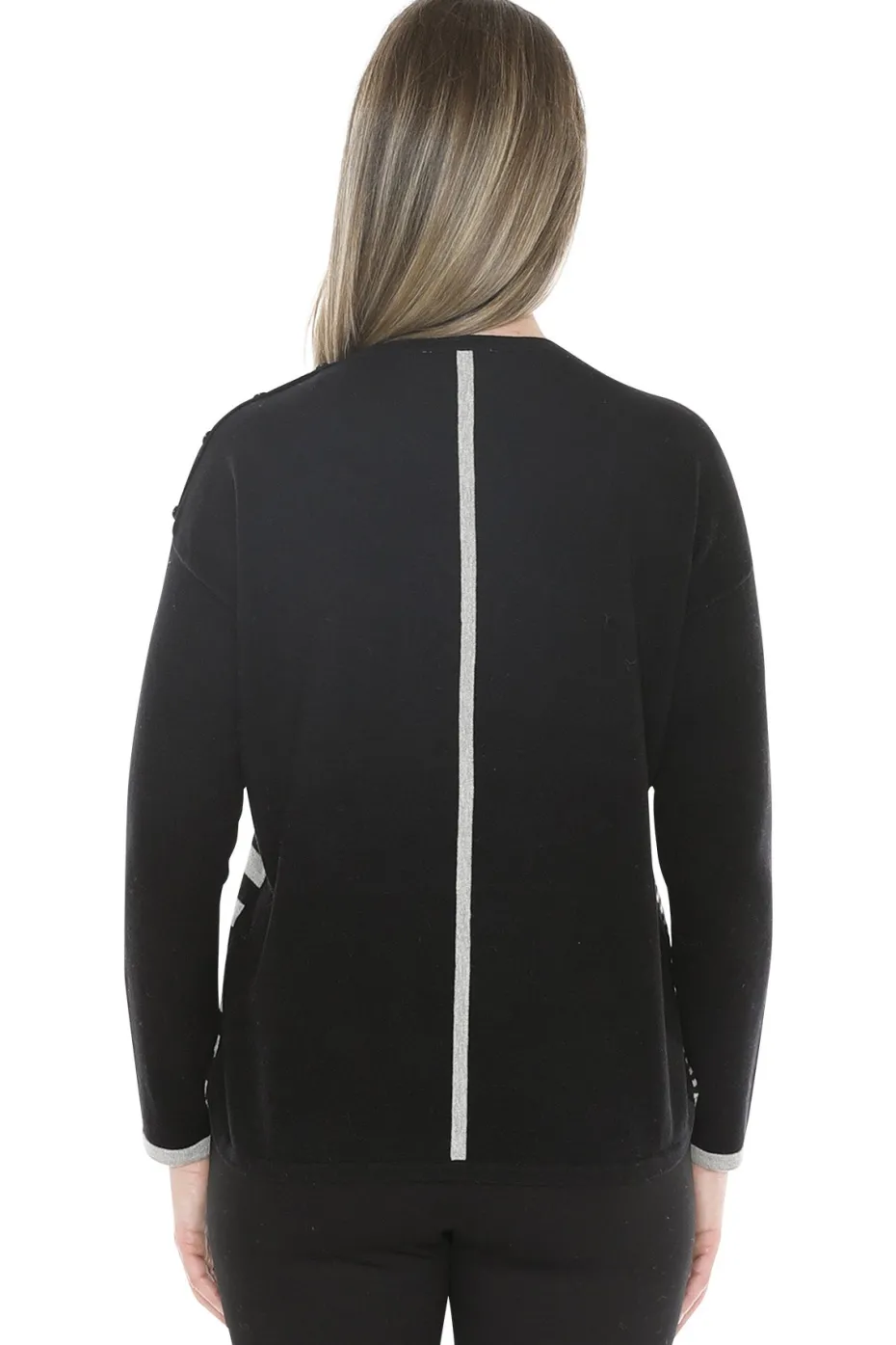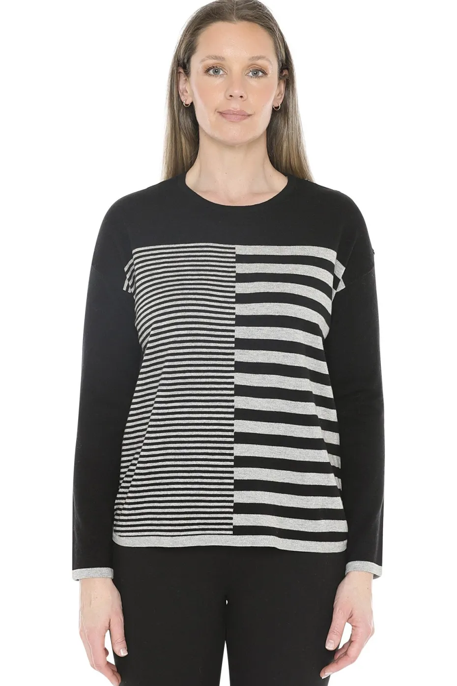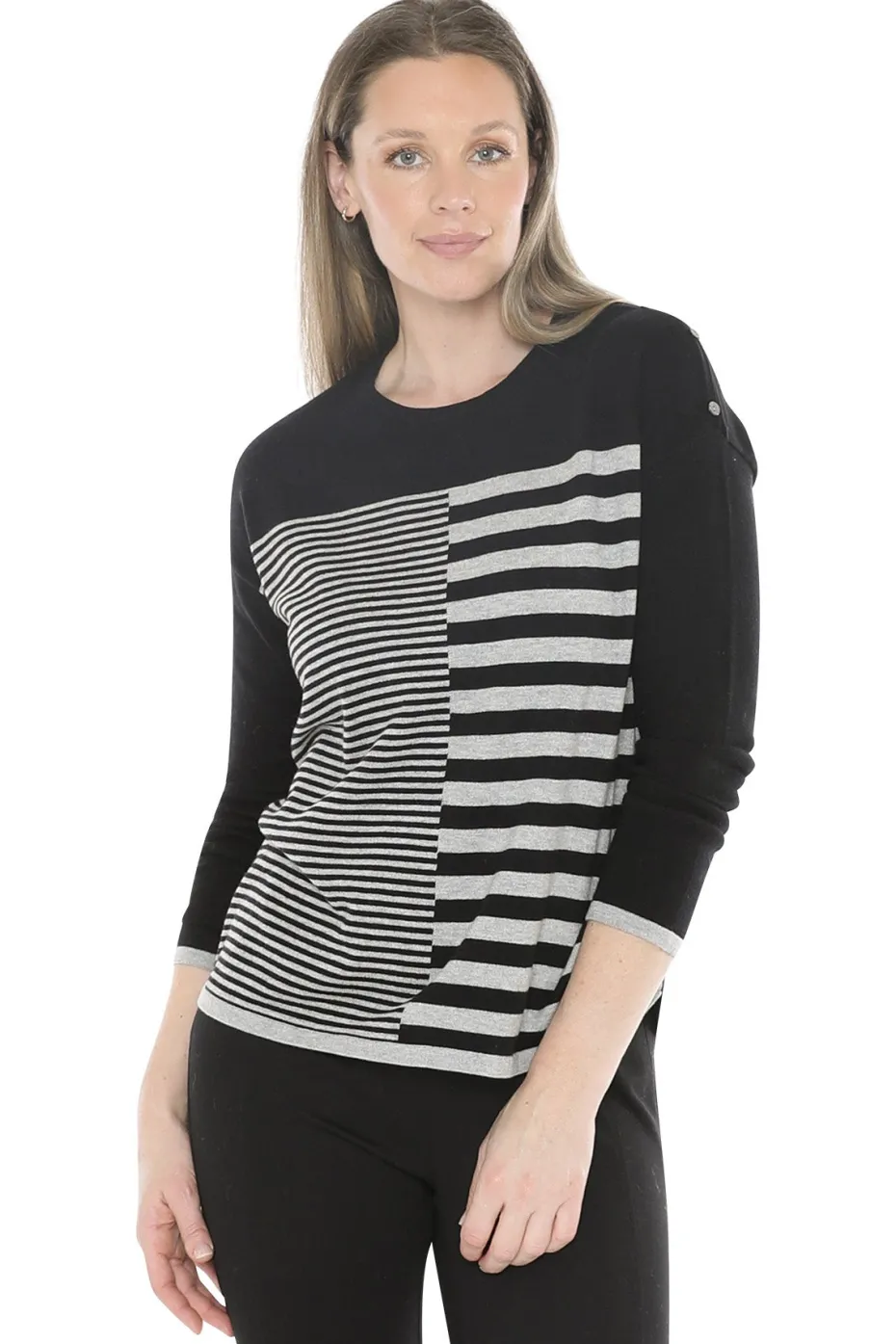 Our Mixed Stripe Pullover in Black u0026amp; Silver Grey is the perfect choice for a cosy yet stylish winter look, featuring a unique cable knit stripe design in contrasting colours. The comfortable fit and versatile style make it easy to pair with any outfit.