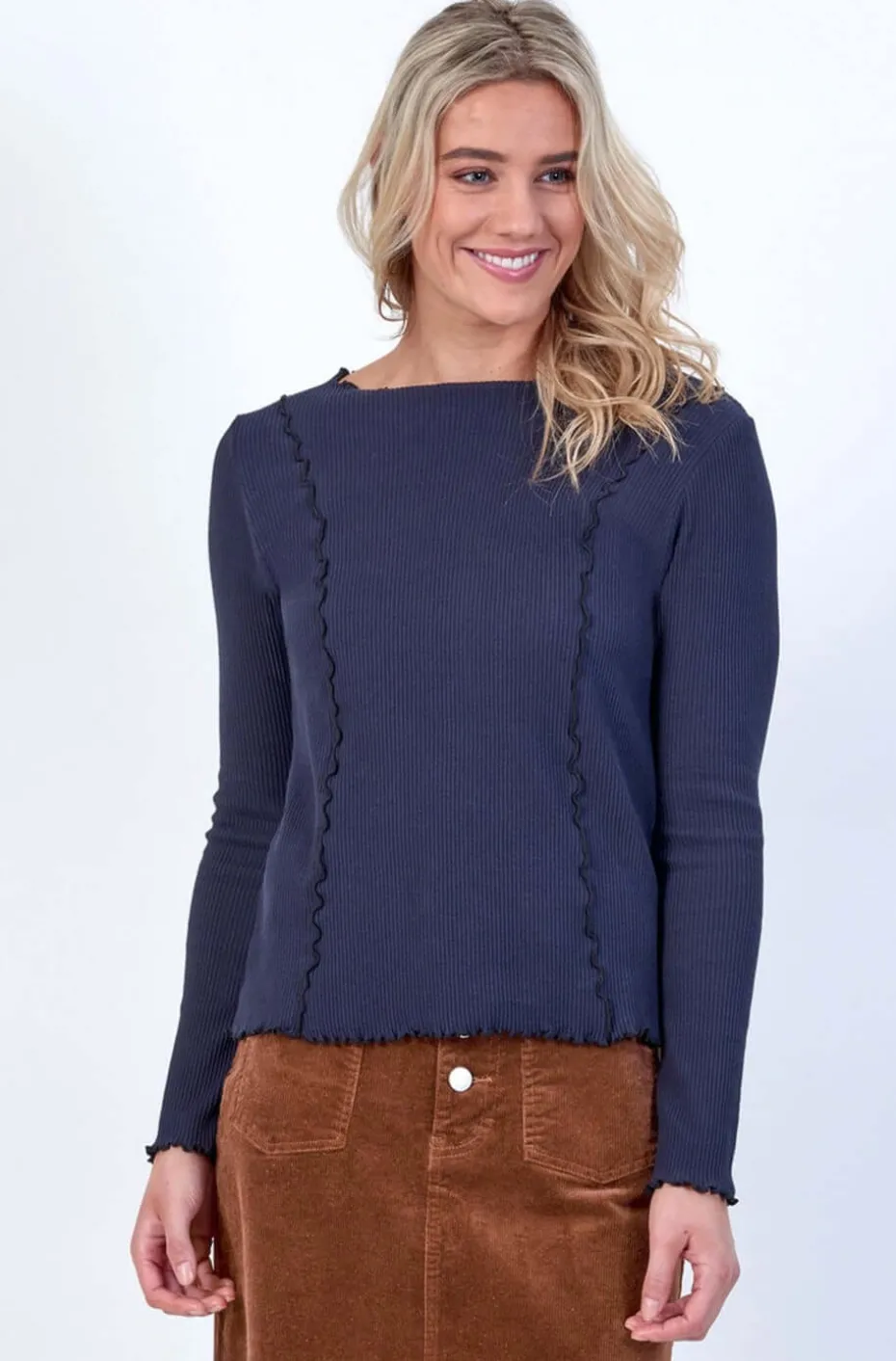 • Neckline, cuffs, panel seams and hem feature lettuce edges