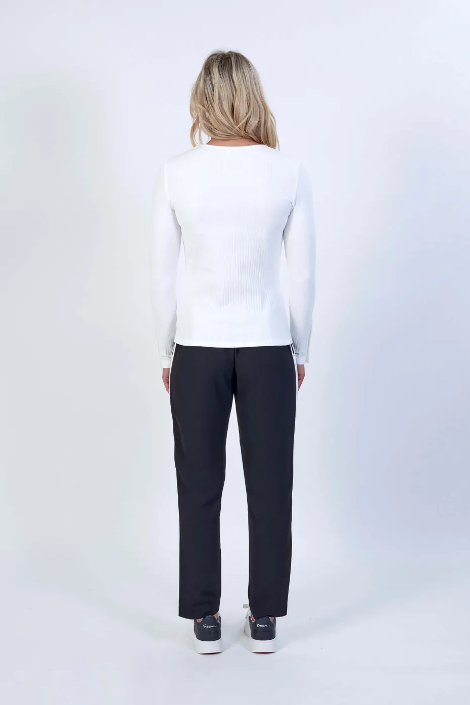 • Long sleeves feature placket and three metal shank buttons to fasten