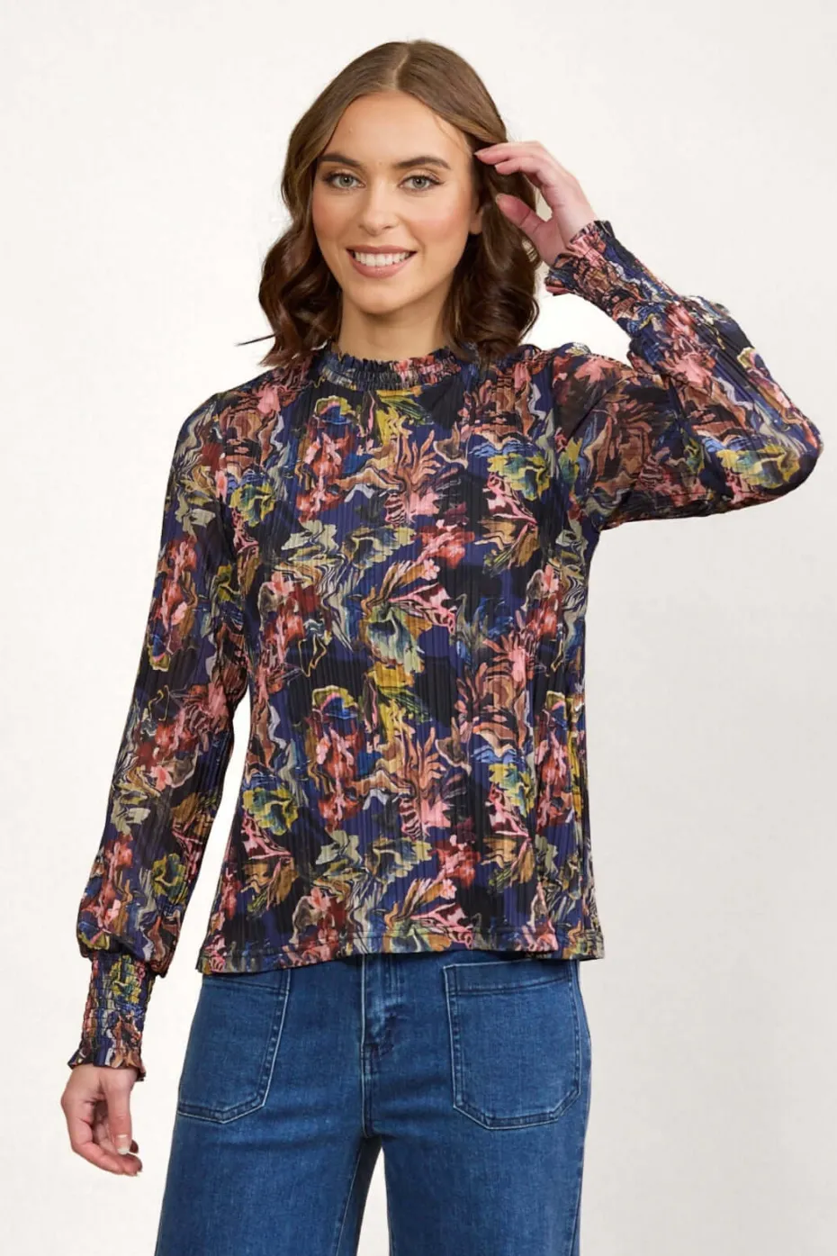 Finely pleated soft mesh top