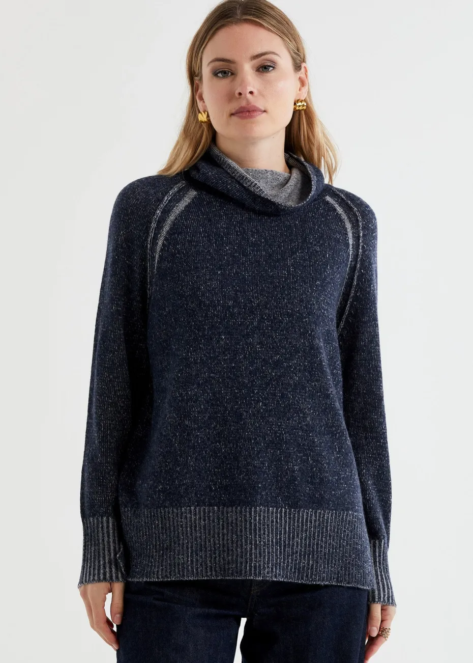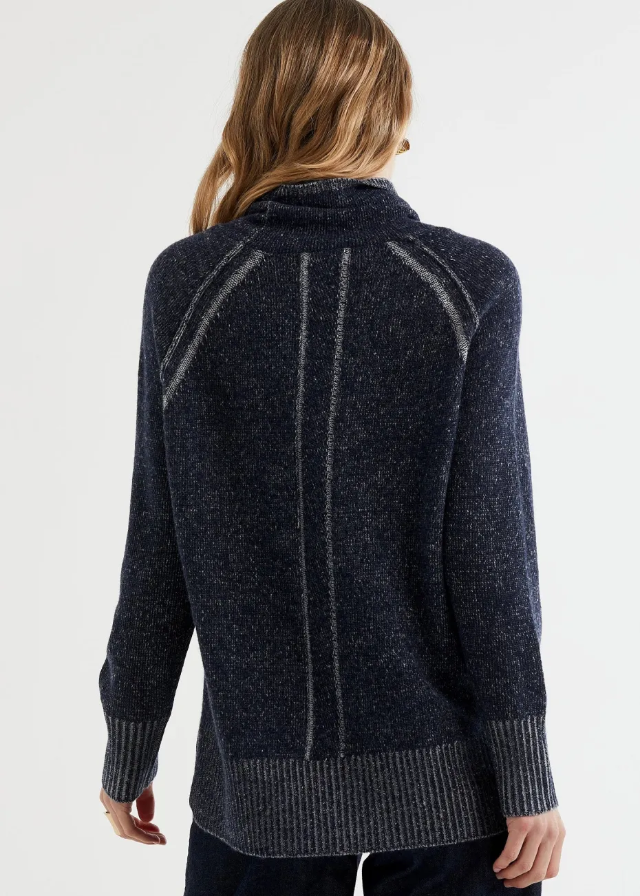 Two toned rollneck soft knit with ribbed trim on cuffs u0026amp; hemline and seam detail
