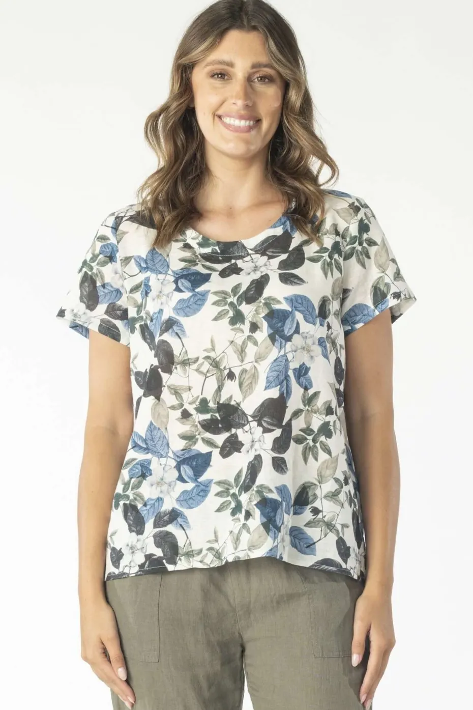 Short sleeved printed linen top