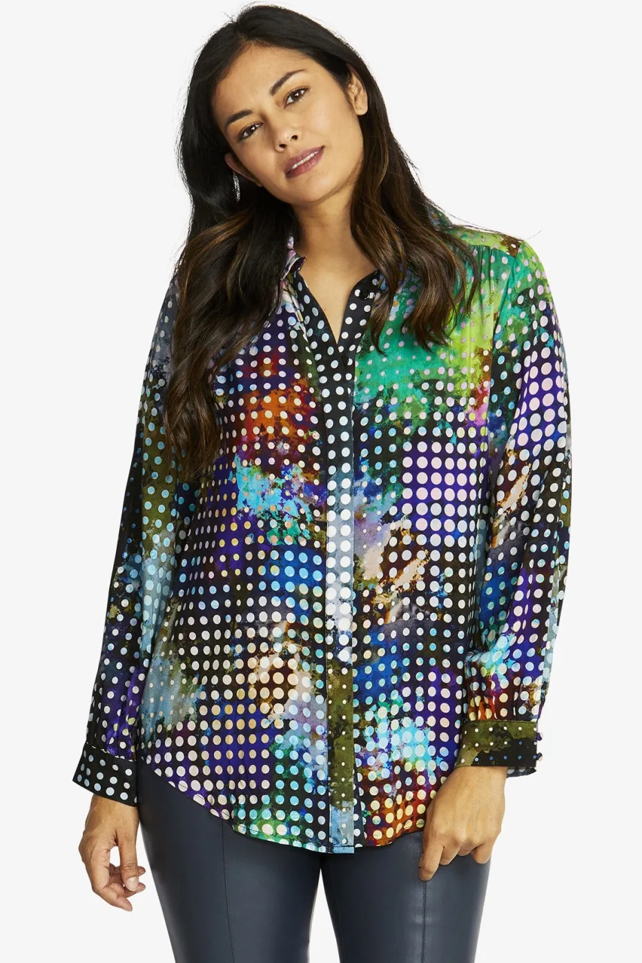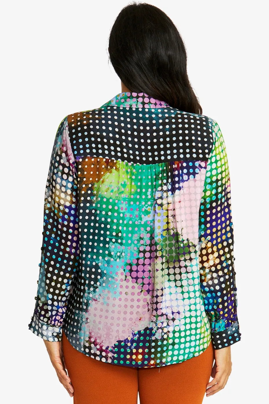 The Celestial Blouse is an elegant wardrobe addition, featuring celestial pops of colour and print that bring an elegant energy to its design.