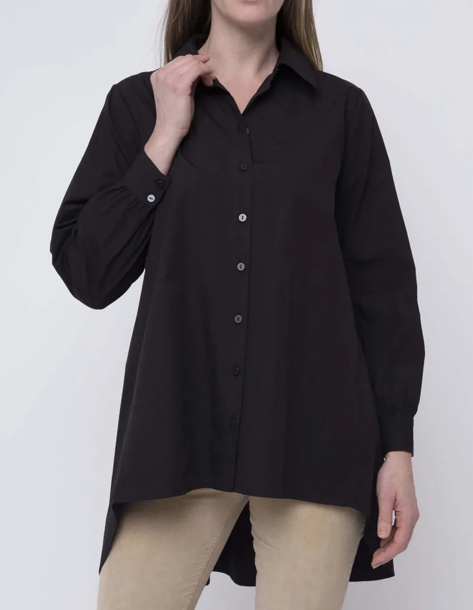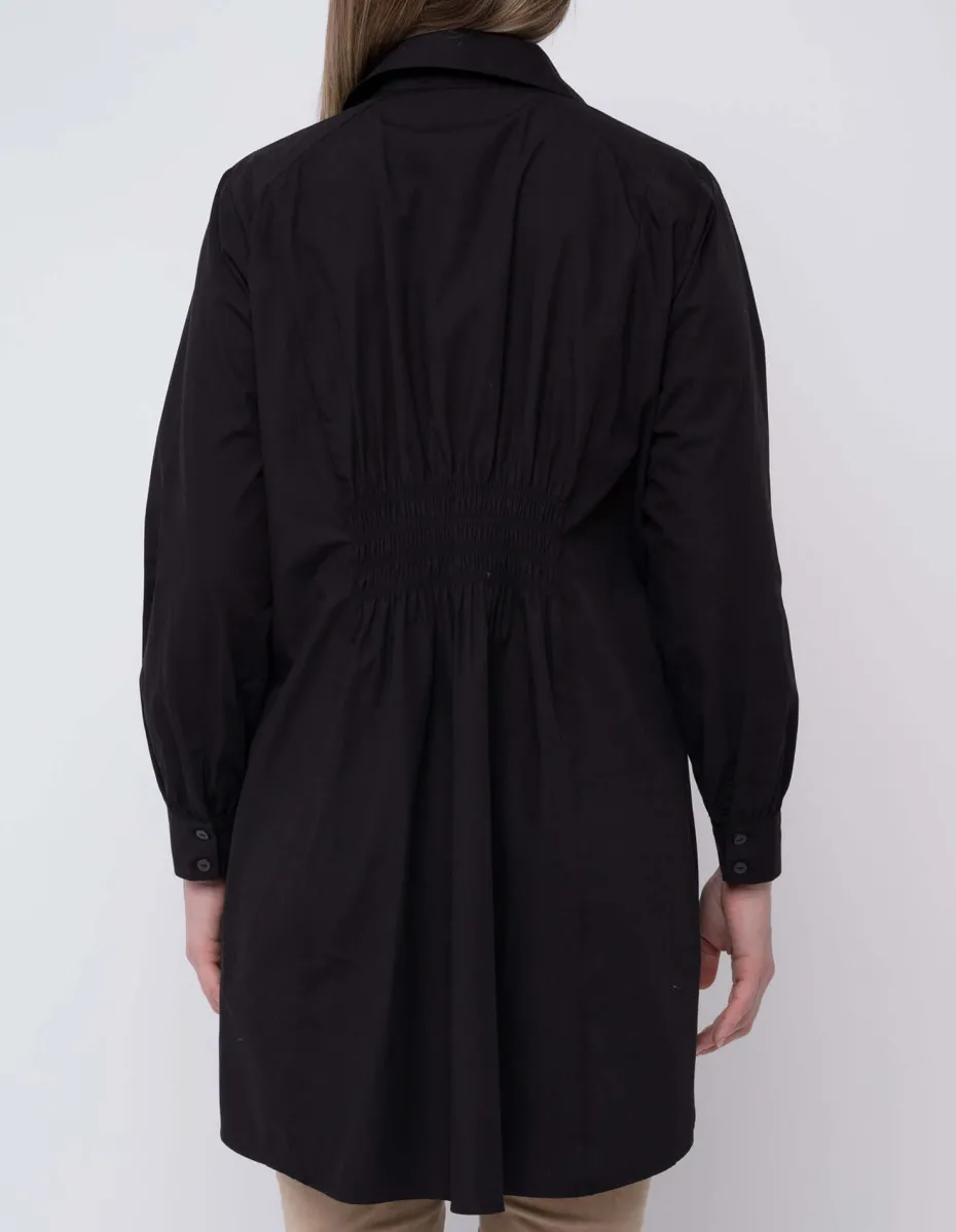 Cotton button through shirt with shirring at rear waistline u0026amp; puffy sleeves.