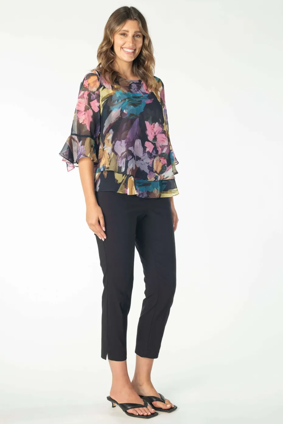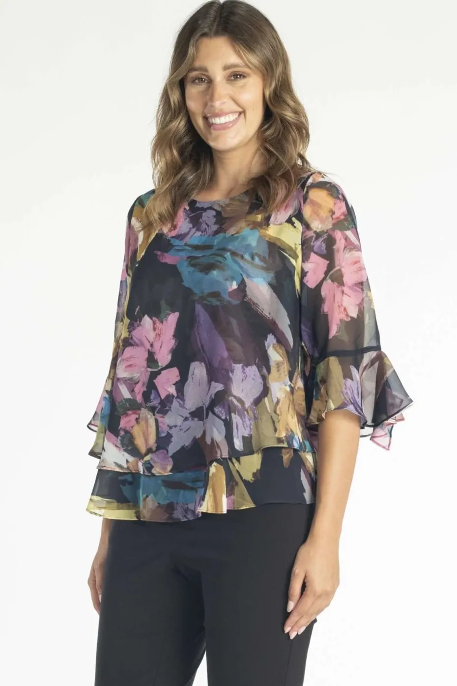 Chiffon layered top with bell sleeves