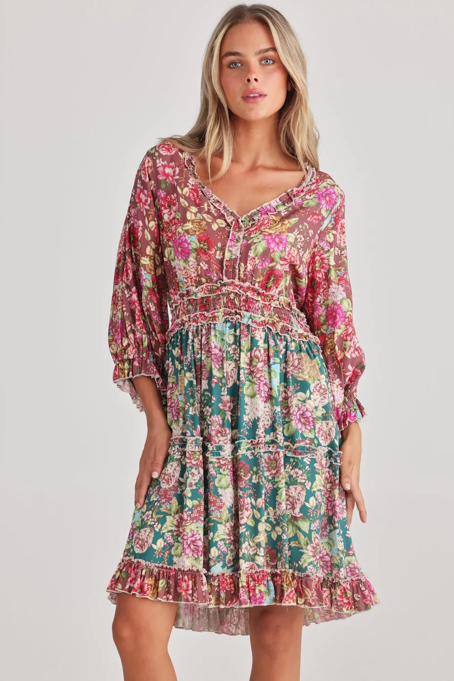 3/4 sleeves hemmed with ruffles