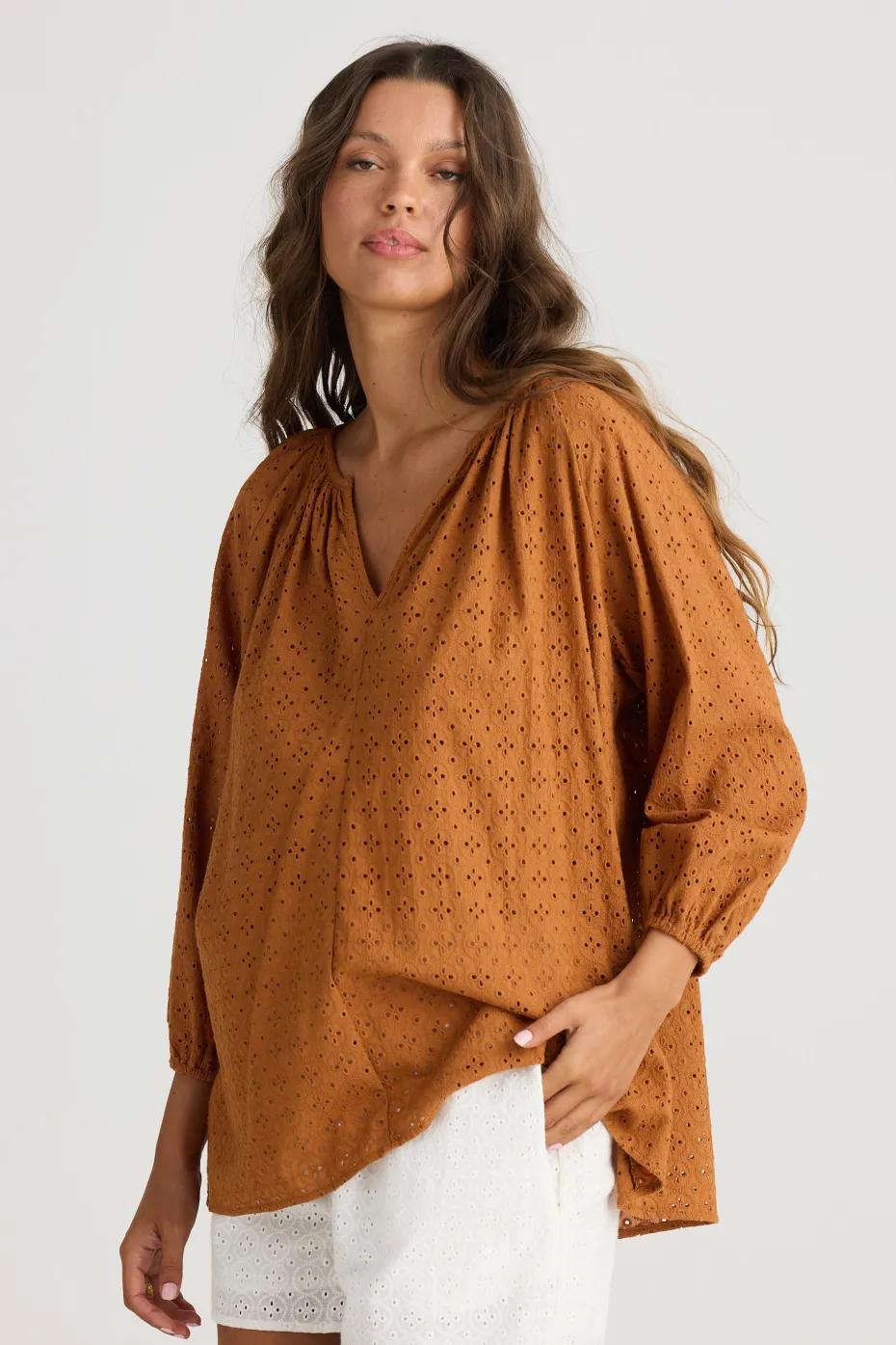 Keyhole neckline 3/4 length sleeve with elasticated cuff