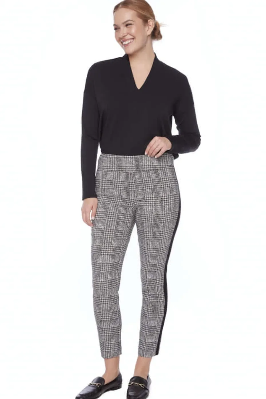 Timeless with a sporty spin, this piece boasts the perfect blend of preppy polish and streamlined sophistication. The plaid print exudes a bookish old-school vibe, juxtaposed against thick side bands that lend an unexpected urban swagger. A chic ankle length and a trouser-inspired silhouette round out the entire look. Style with stacked loafers and a ribbed turtleneck for midday meetings, or bright sneakers and a chunky knit for a modern twist.
