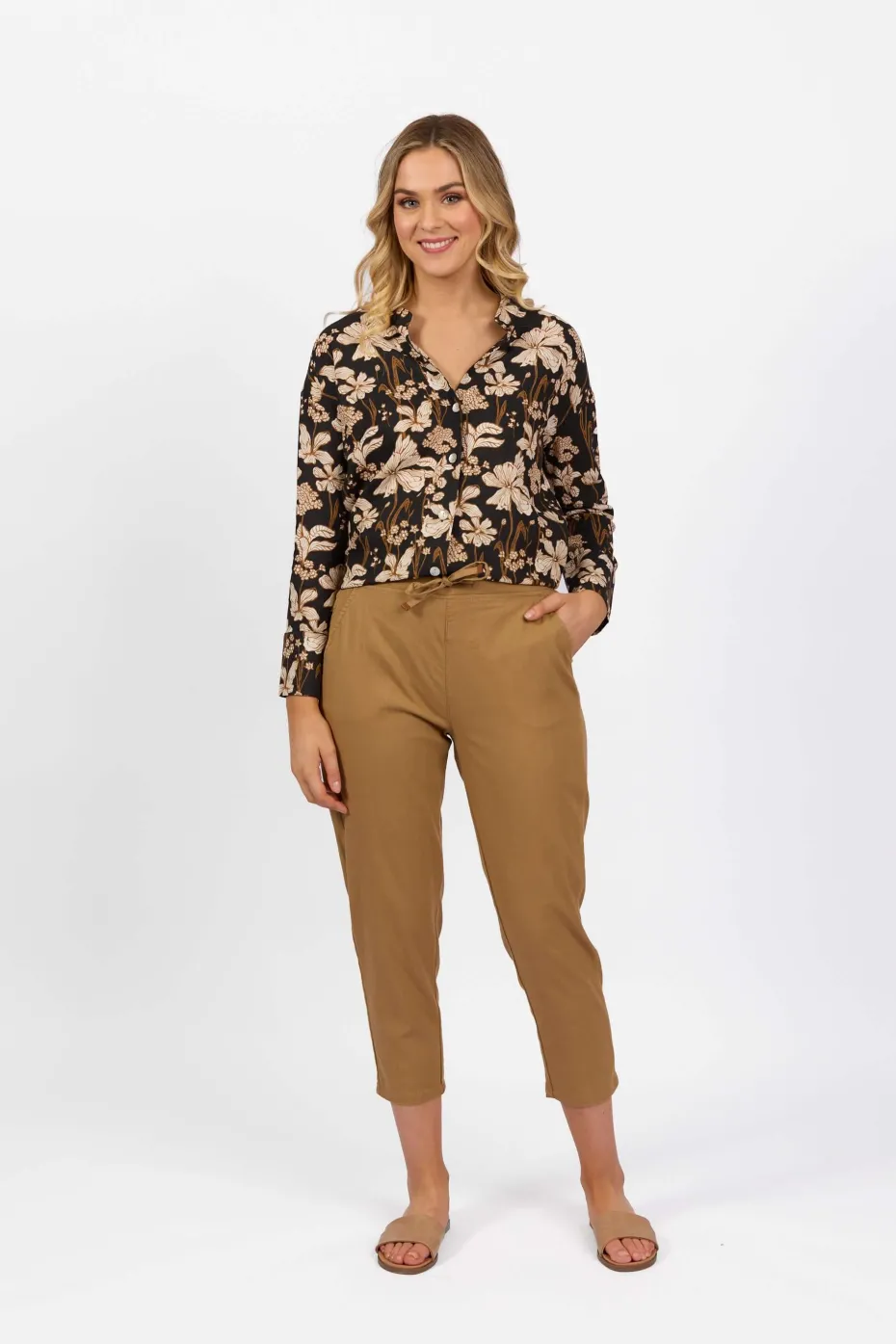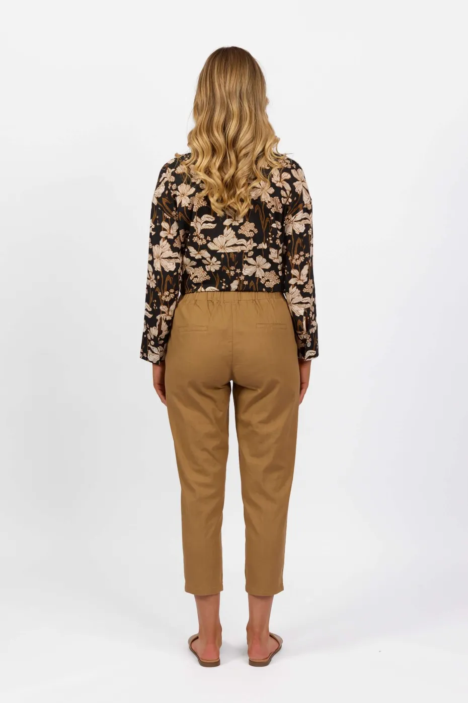 Vassalli 7/8 Length Skinny Leg Elastic Waist Pant in Army