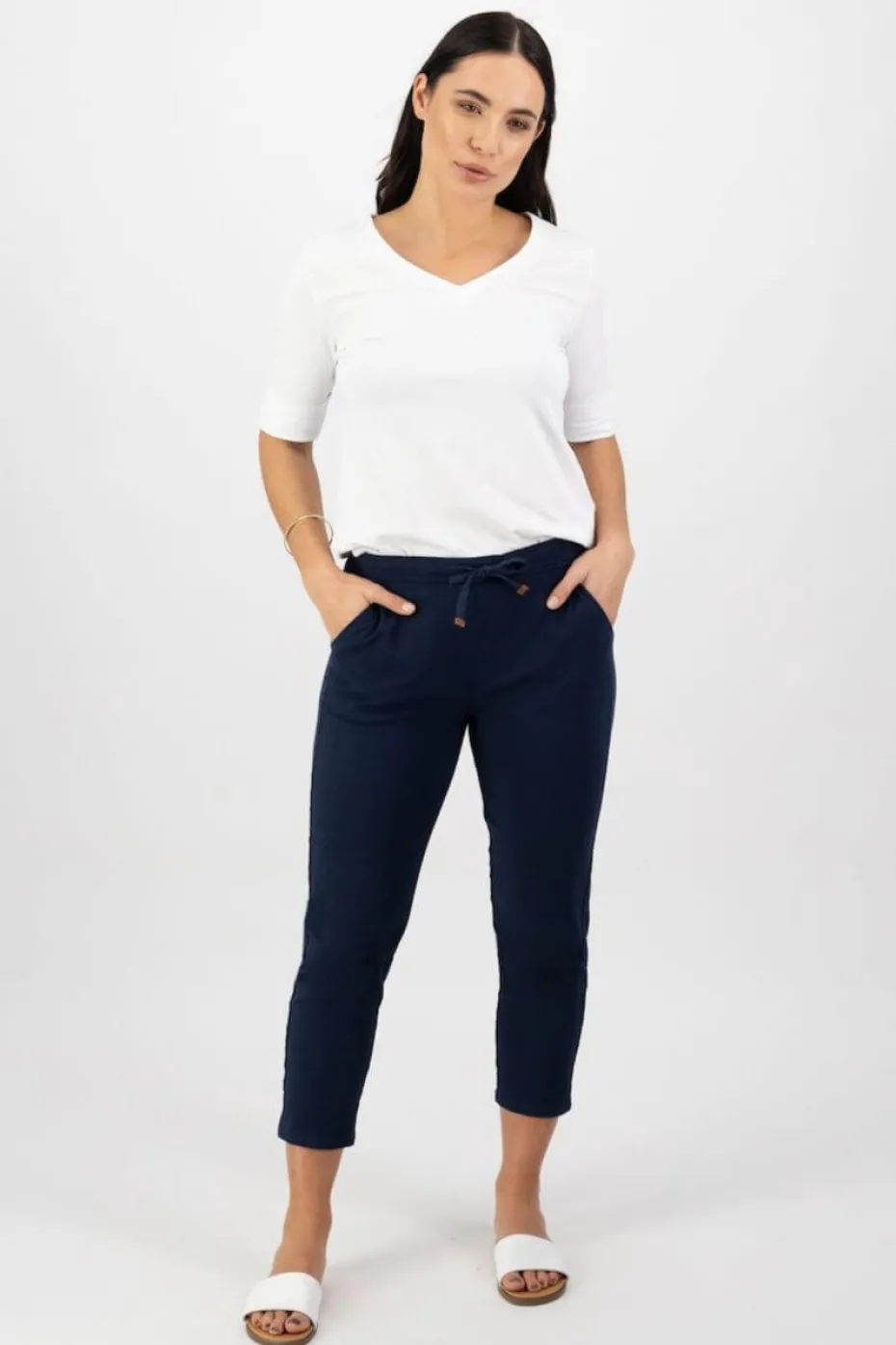 Vassalli 7/8 Length Skinny Leg Elastic Waist Pant in Navy