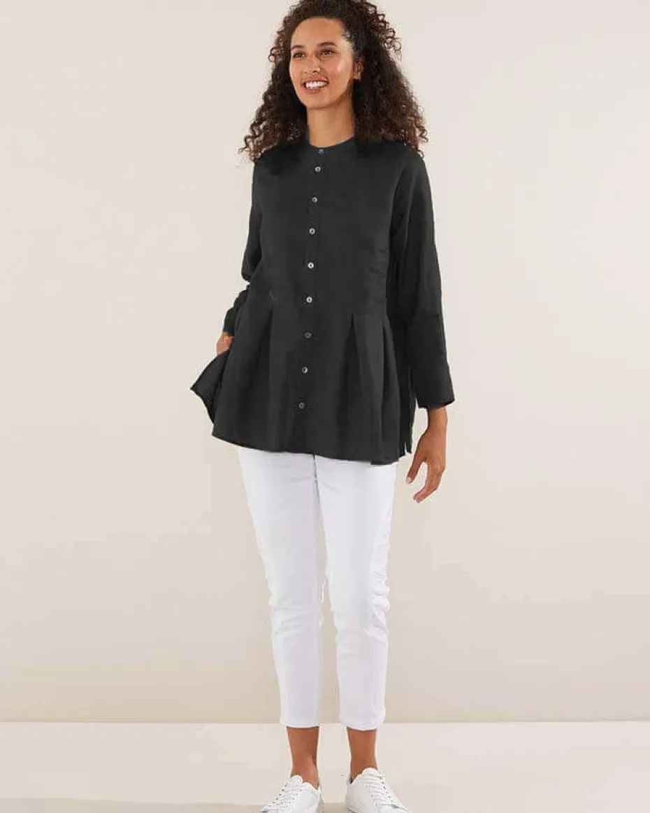 This loose fitting Pleated A-Line Shirt is flattering on all body types and is crafted with 100% linen, making it lightweight and breathable. The long sleeves and crew neckline make it perfect for layering or wearing on its own. Dress it up or down, this shirt is perfectly paired with trousers, pants and denim.
